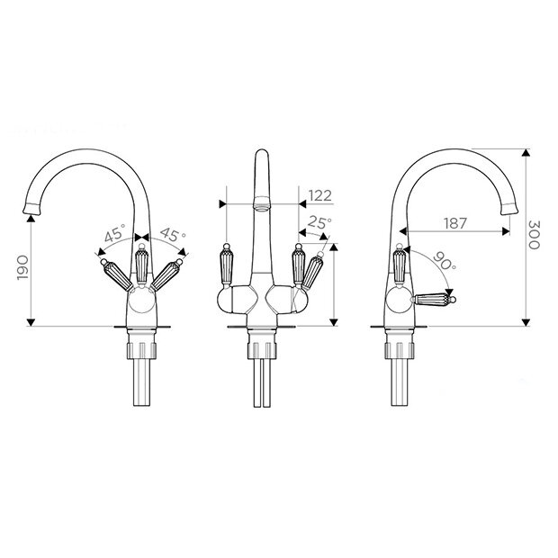 | Высота излива | 190 мм / 300 мм |