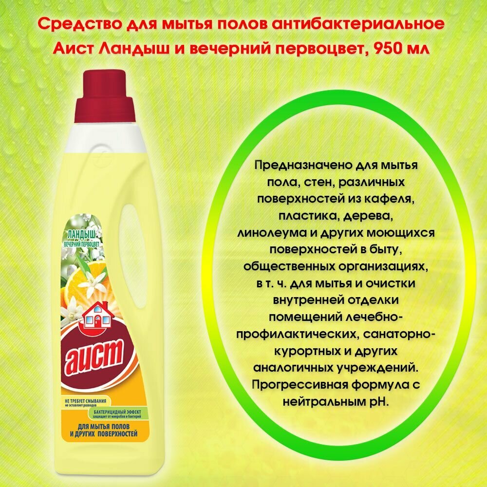 Аист средство для мытья полов и других поверхностей Ландыш и вечерний первоцвет, 0.95 л