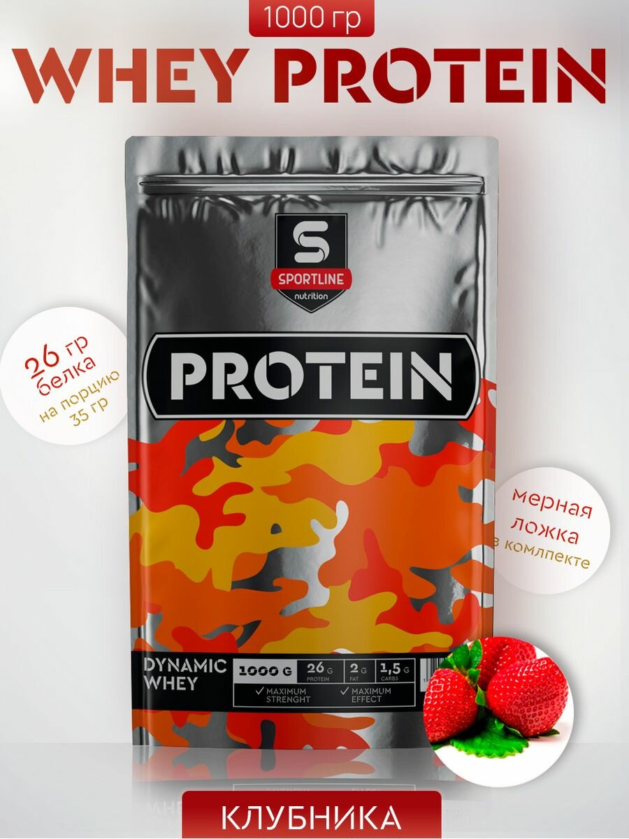Протеин Sportline Nutrition Dynamic Whey Protein, 1000 гр., клубника