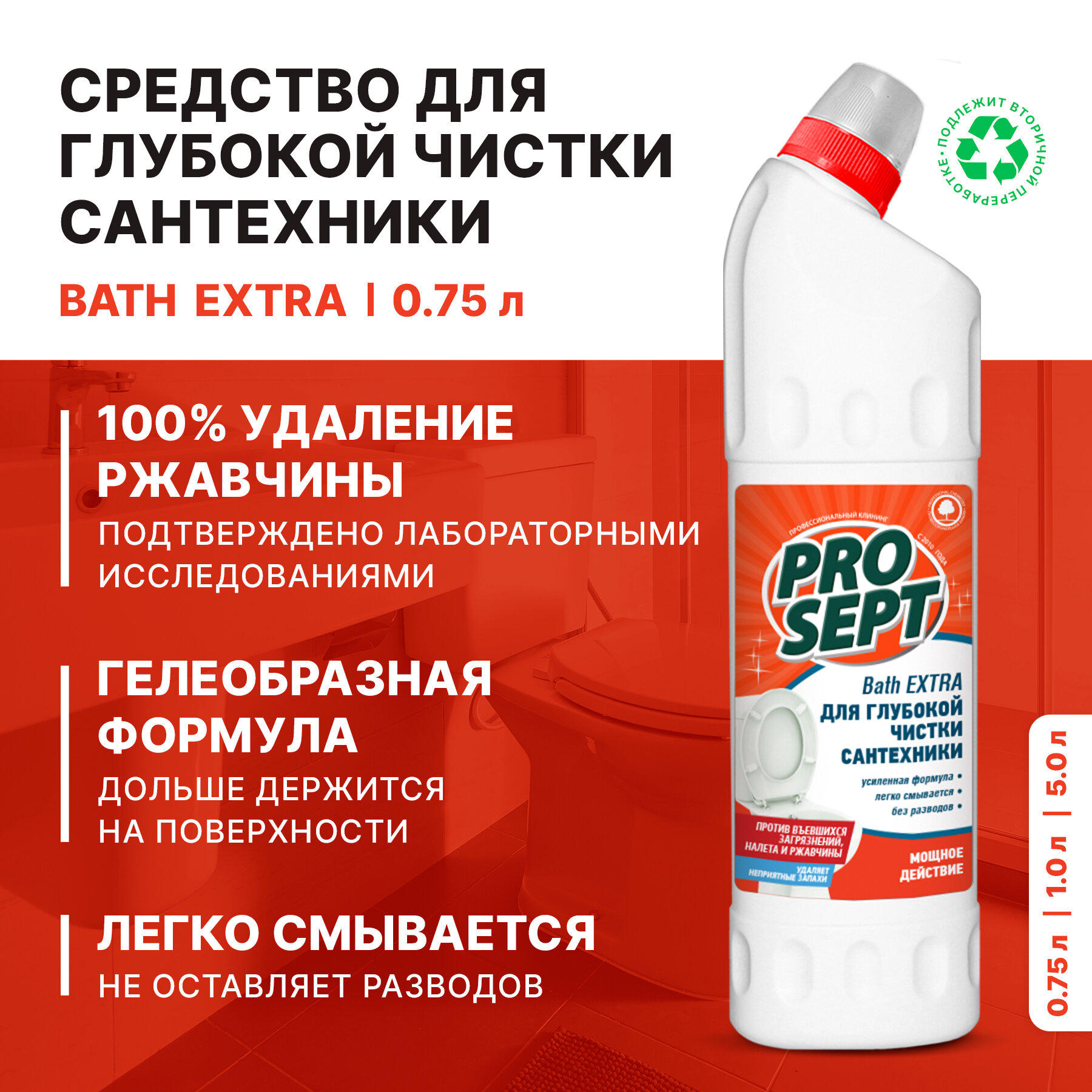 PROSEPT гель для глубокой чистки сантехники Bath Extra, 0.75 л