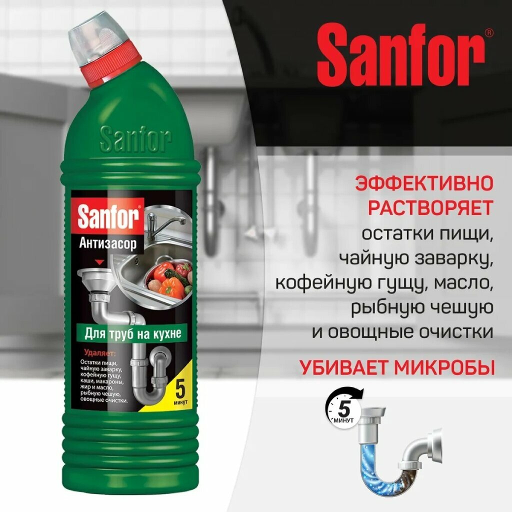 Купить Гель д/прочистки труб SANFOR Антизасор 750мл 5 мин. д/кухни