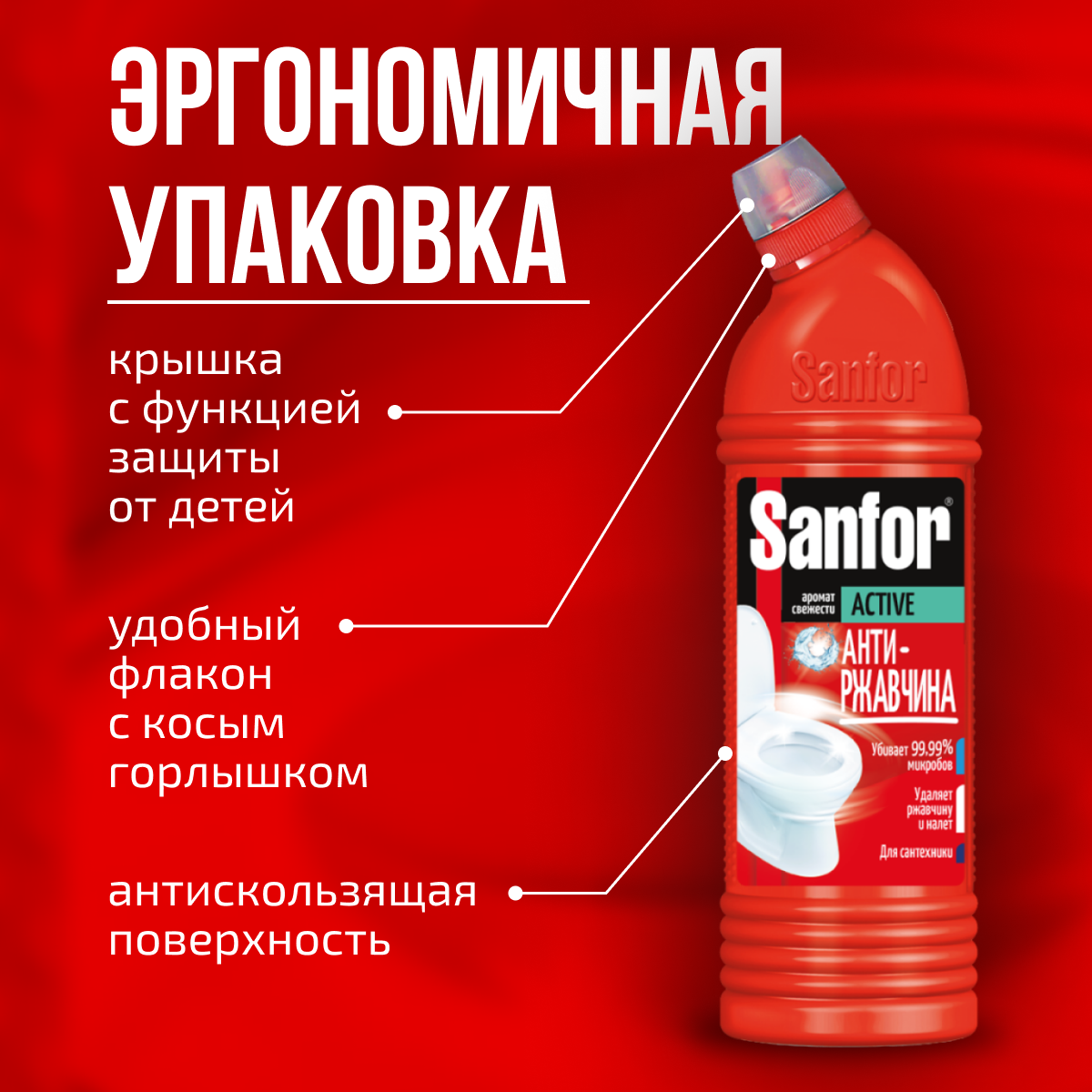 SANFOR Средство санитарно-гигиеническое Sanfor active антиржавчина 1 мин, 1000 мл