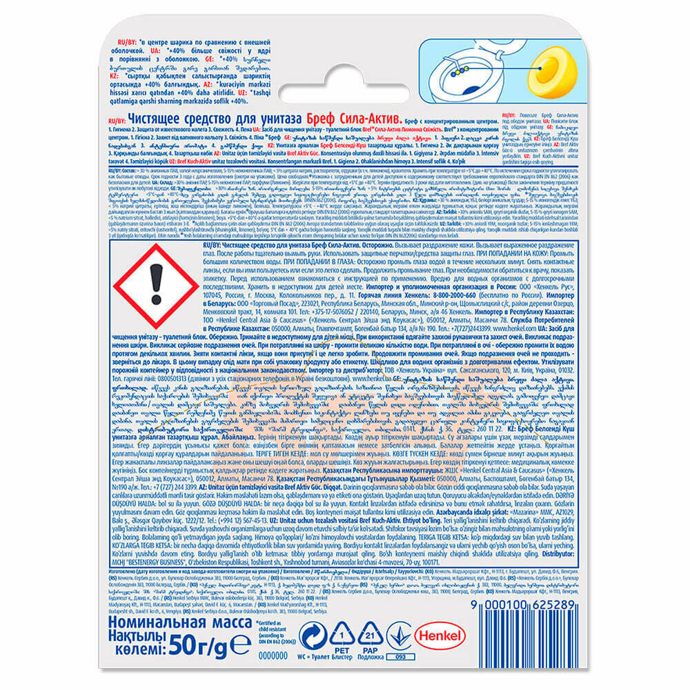 Чистящие средства Bref 50г Сила-Актив/лимон гигиенич. блок