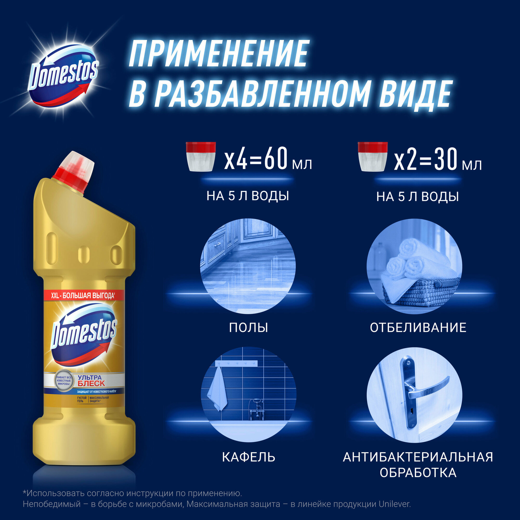 Domestos Ультра Блеск чистящее средство для туалета и ванной, эффективное отбеливание, 1500 мл