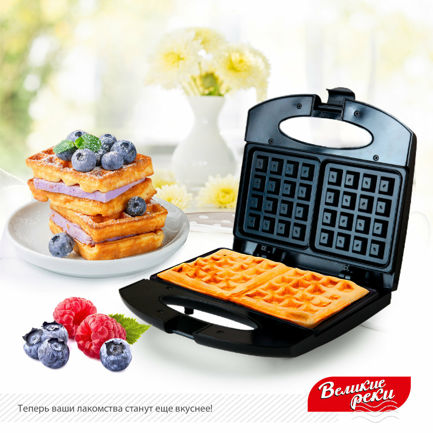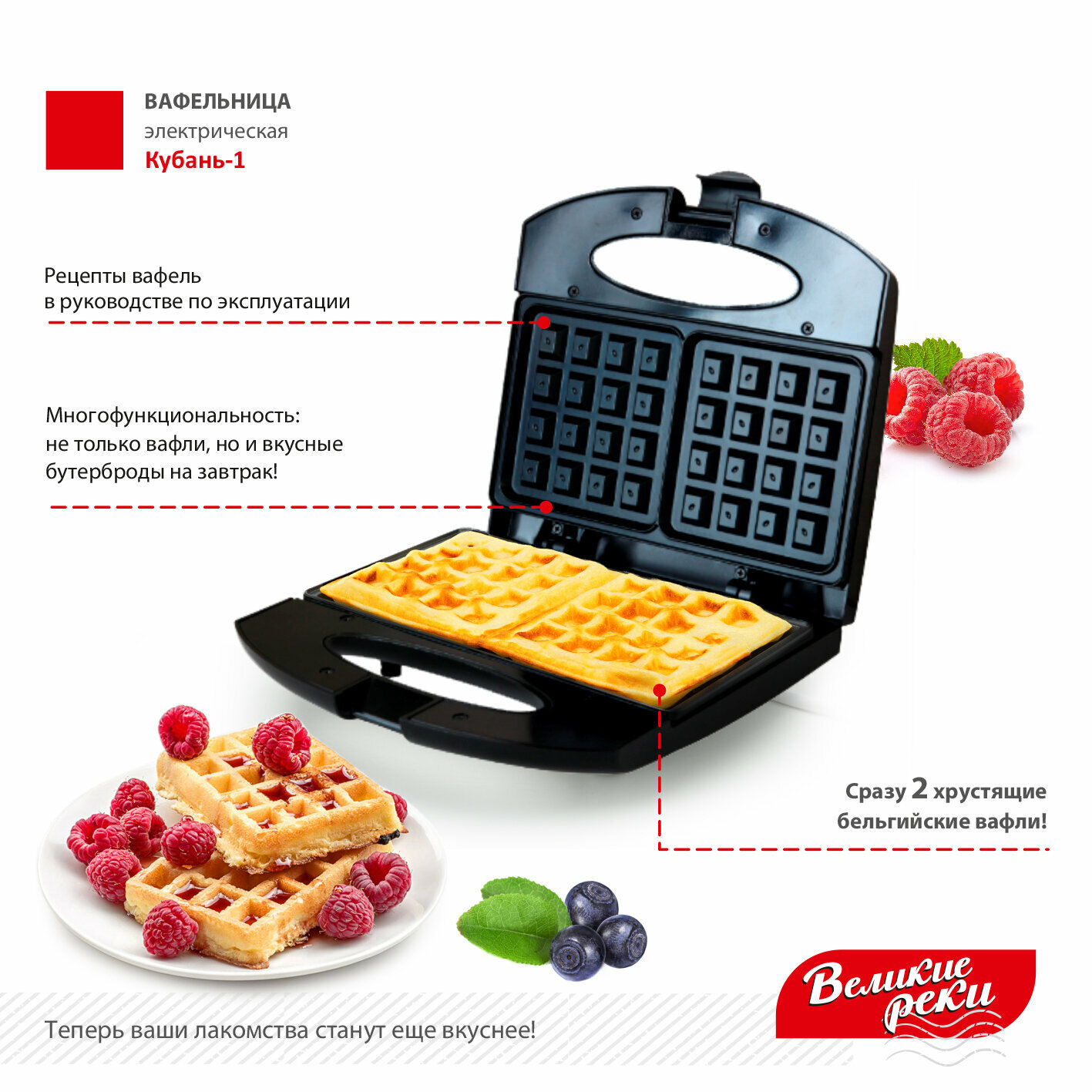 Великие реки Вафельница « Кубань-1» , 2 венские вафли, 800 Вт, чёрный