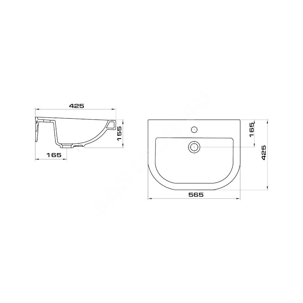 Раковина подвесная Santeri 56.5х42.5х15.5 фаянс, цвет Белый (131155S0010B0)