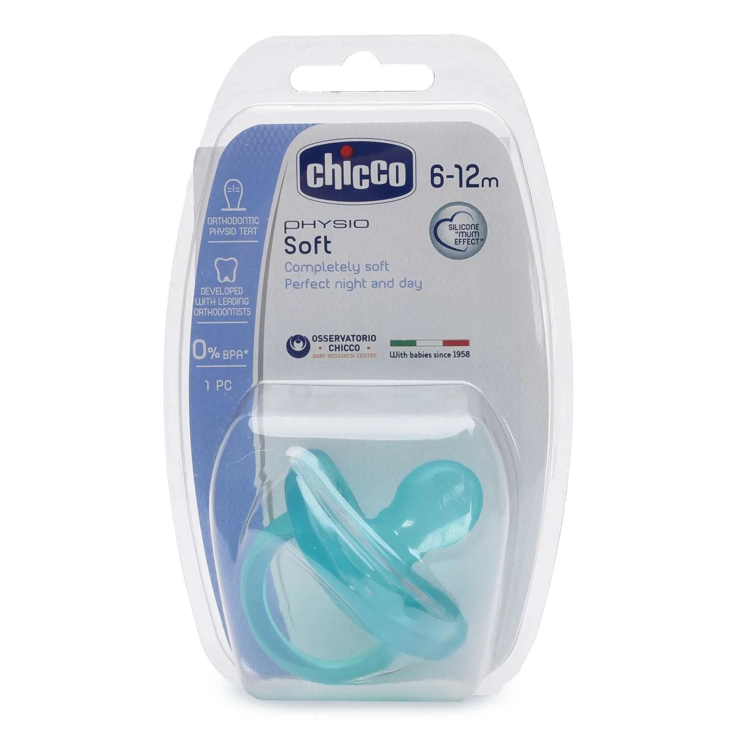 Chicco Пустышка Physio Soft 6-12 мес силиконовая голубая, 1 шт