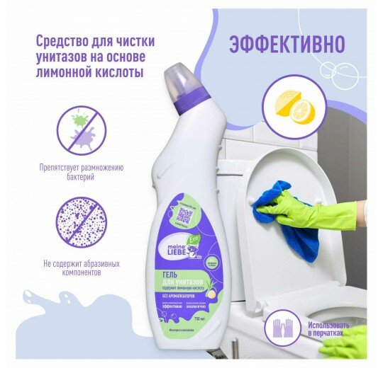 Купить MEINE LIEBE Чистящий ЭКО-Гель для унитазов без хлора и фосфатов на основе лимонной кислоты, 750мл ML33102