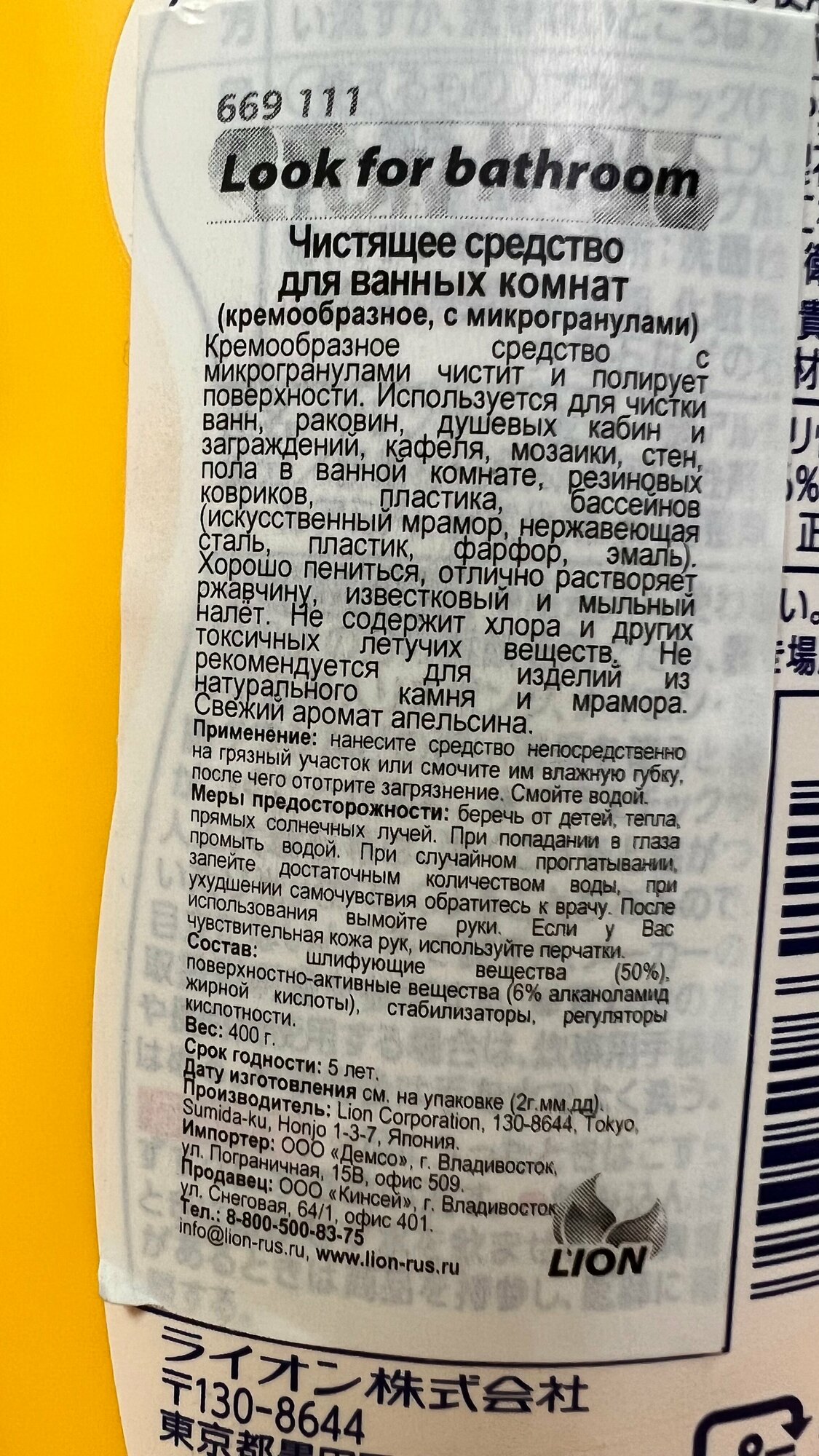 Lion Чистящее средство для ванных комнат "Look" (кремообразное, полирующее, с микрогранулами), 400гр