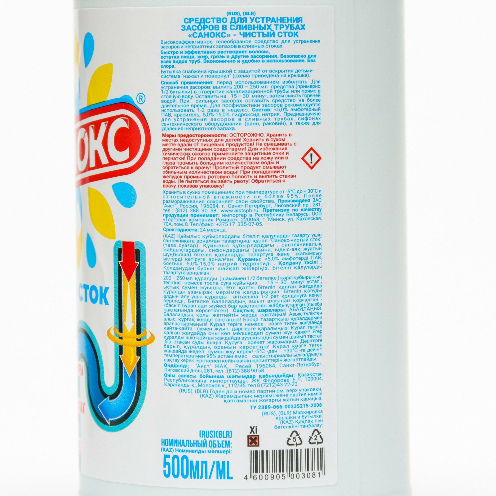 Аист Средство для устранения засоров Санокс "Чистый сток", 500 мл