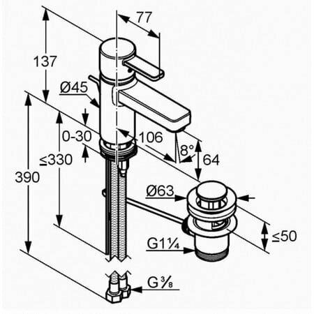 Смеситель KLUDI ZENTA для умывальника, однорычажный, д/к, хром 382500575