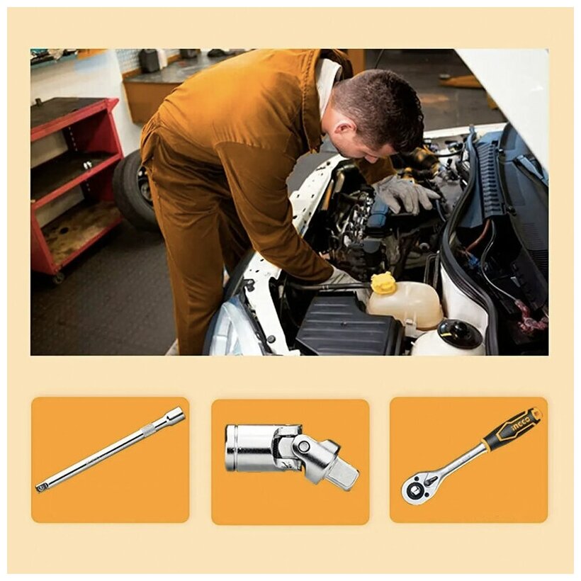 Набор головок 25 предметов с трещоткой 10-32 мм INGCO HKTS12251