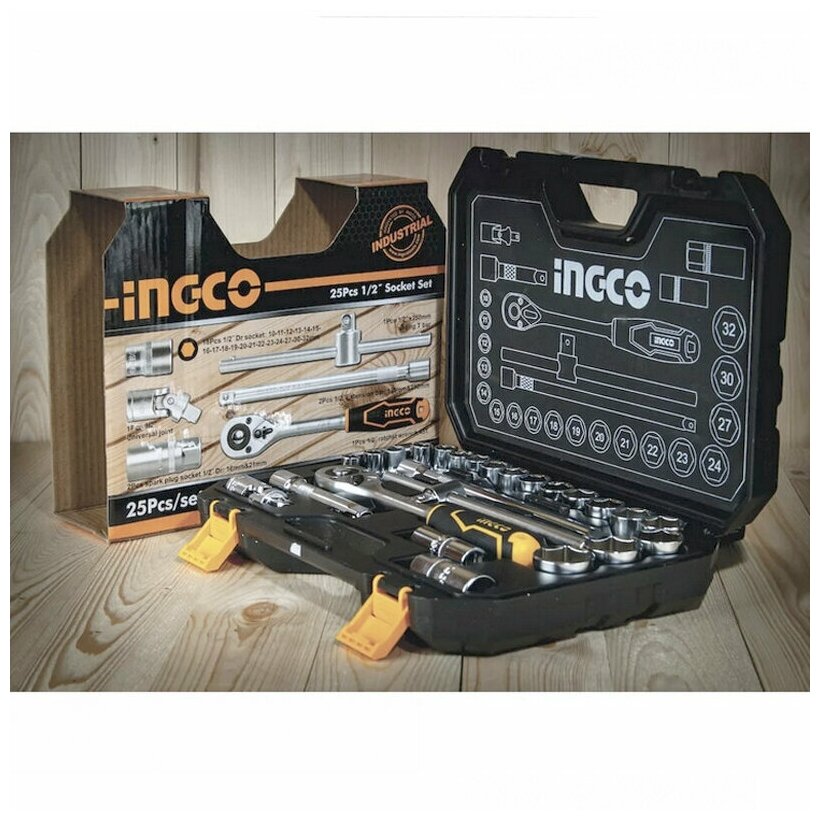 Набор головок 25 ШТ 1/2" Ingco HKTS12251,10-32мм, CR-V