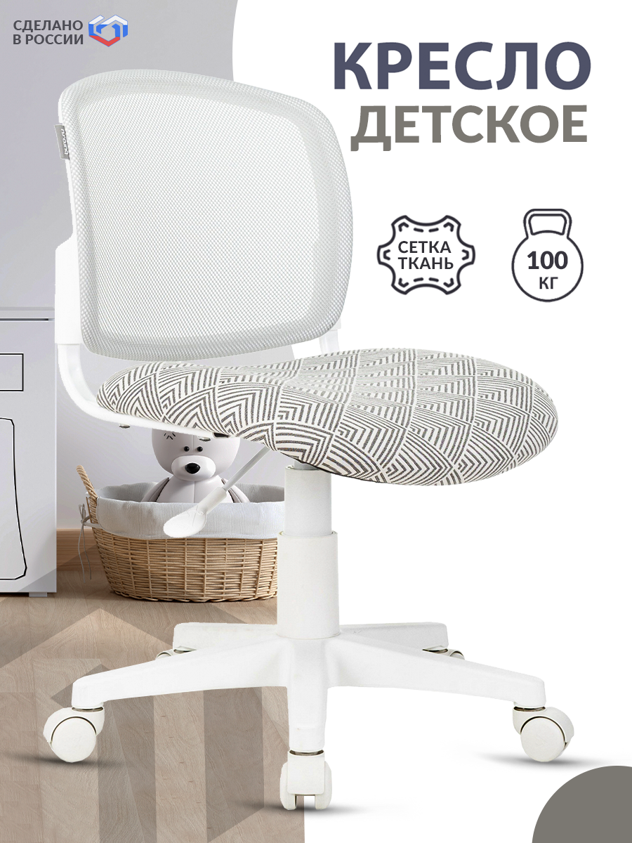 Кресло детское CH-W296NX светло-серый, овечки сетка/ткань крестов. пластик белый / Офисное кресло для оператора, школьника, ребенка, для дома