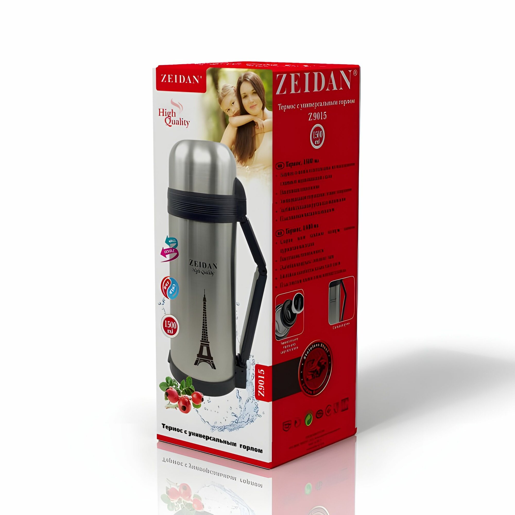Ниже Вы можете прочитать отзывы на Термос 1.5 л нержавеющая сталь Zeidan, вакуумный, с широким горлом, объем 1500 мл, ознакомится с подробными характеристиками, посмотреть интересные обзоры и фотографии на Термос 1.5 л нержавеющая сталь Zeidan, вакуумный, с широким горлом, объем 1500 мл.