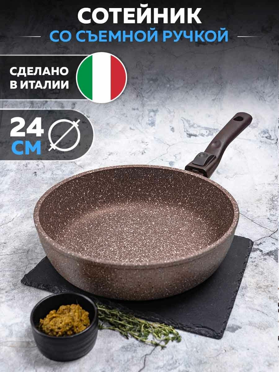 арт. ATI-2024 Сотейник TVS ART GRANIT INDUCTION 24см, съемная ручка