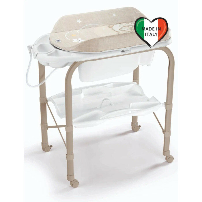 Пеленальный стол Cam Cambio с ванночкой под съемным матрасиком, нижняя полка, отделение для бутылочек, место под губку и мыло