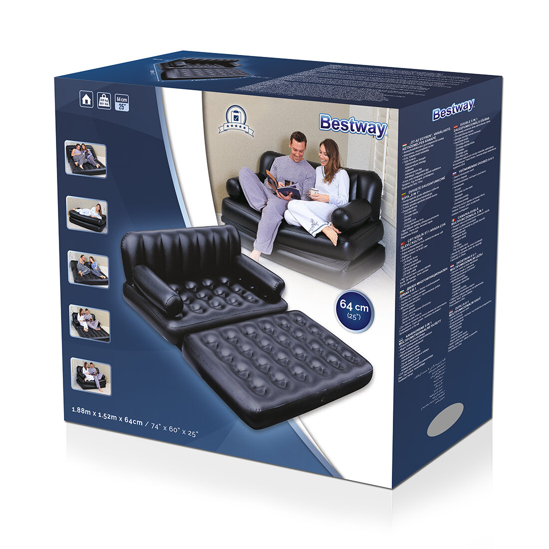 Кровать надувная BestWay 75054 BW Double 5-in-1 Multifunctional Couch 188х152х64 см, black