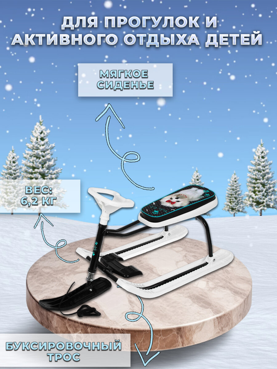 Снегокат Nika Kids «Тимка Спорт 2 + Болонка», ТС2+/БЛ, цвет белый/чёрный