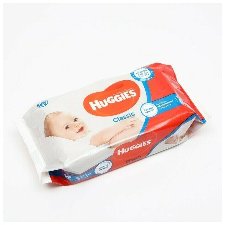 Влажные салфетки Huggies Classic, липучка, 56 шт.