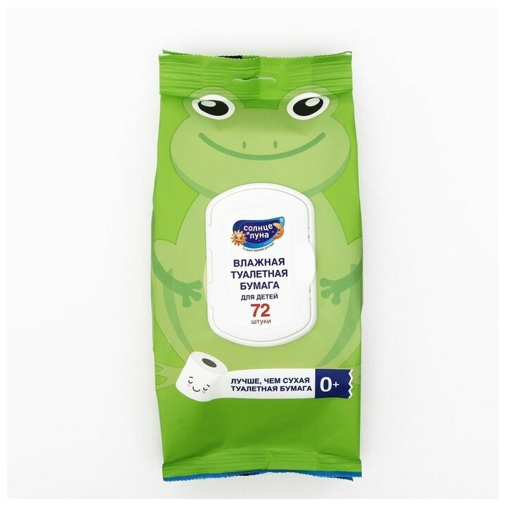 Бумага туалетная влажная детская Солнце и луна с экстрактом череды, белая, 72 листа