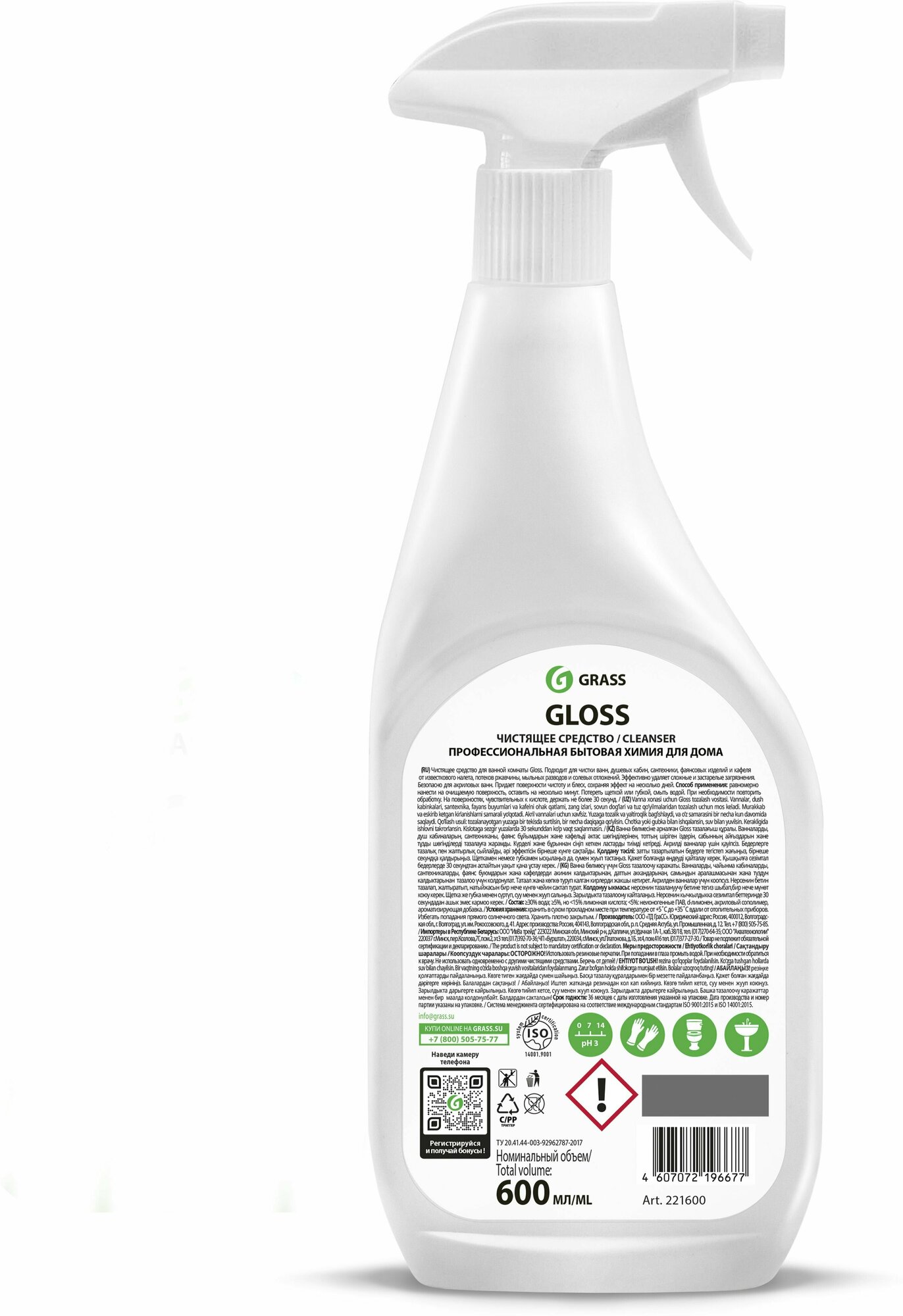 Средство универсальное для ванны и кухни grass gloss с лимонной кислотой 600мл