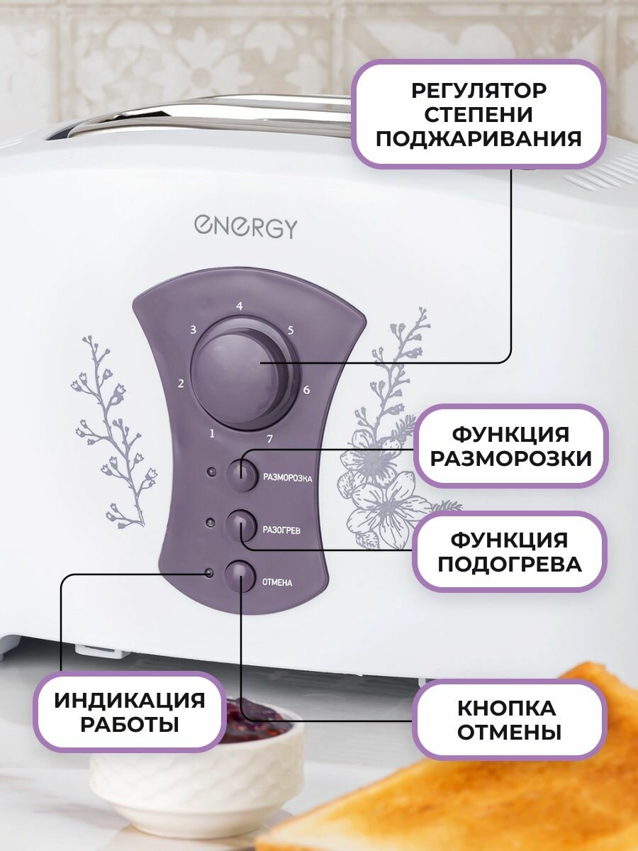 NINGBO DAZHI ELECTRICAL APPLIANCE CO., LTD тостер "ENERGY" EN-280 750 ВТ, 7 степеней прожарки, поддон для крошек (1/6)
