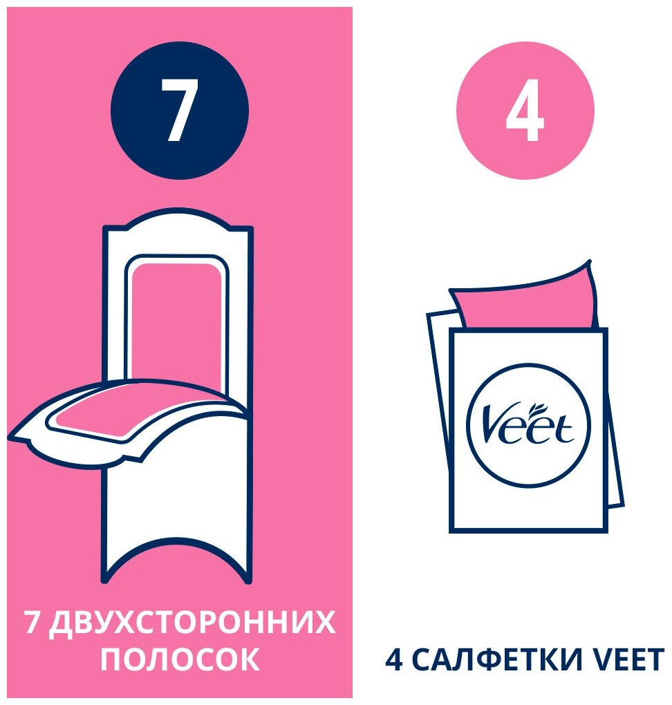 Купить Veet восковые полоски (линия бикини и область подмышек), бархатная роза и эфирные масла, 14шт. полосок для депиляции = 7шт. сдвоенных полосок