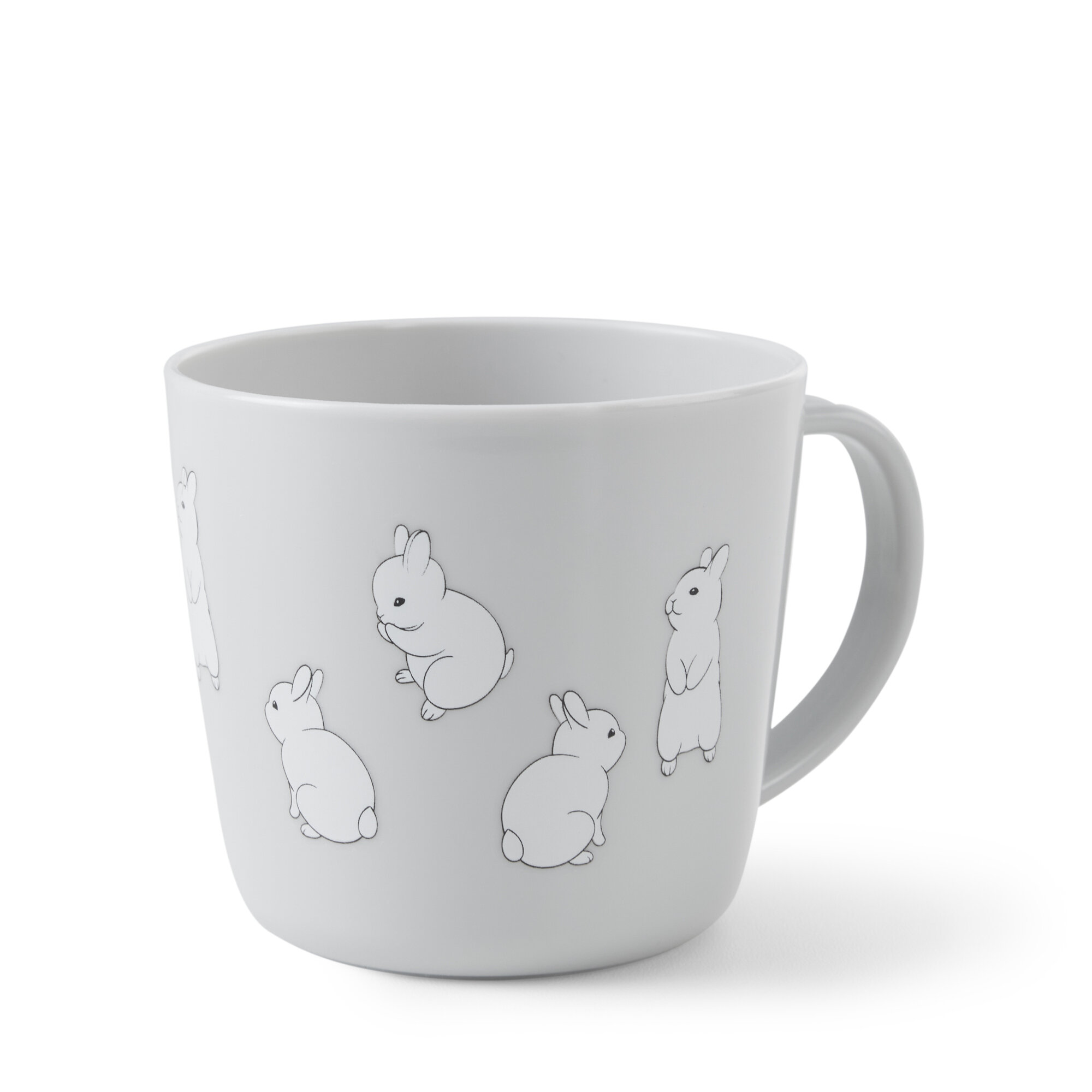 15006, Кружка детская ударопрочная Happy Baby в цветочек пластиковая, чашка, посуда детская, с кроликами, серая, 200мл