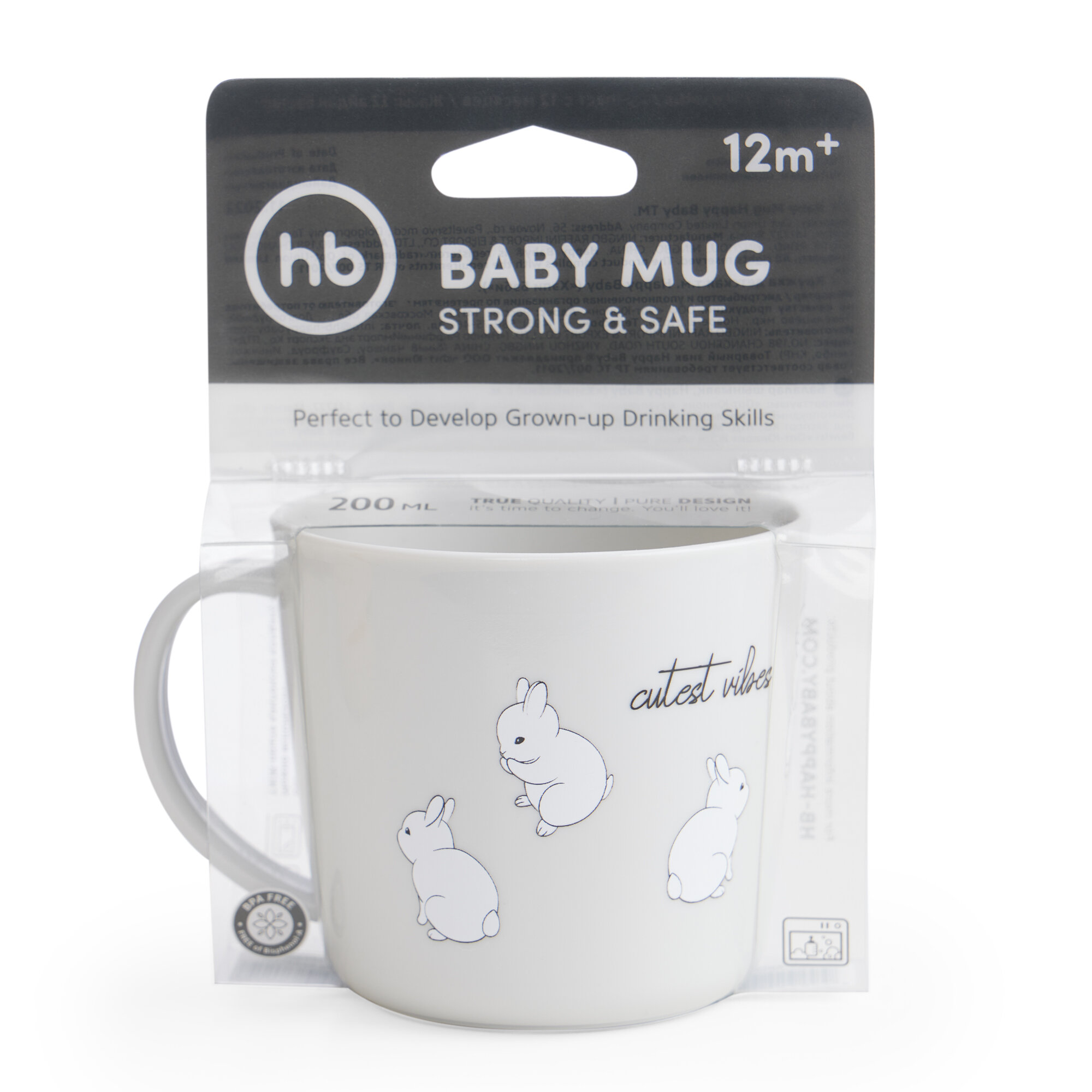 15006, Детская кружка ударопрочная Happy Baby пластиковая, с кроликами, серая, 200мл