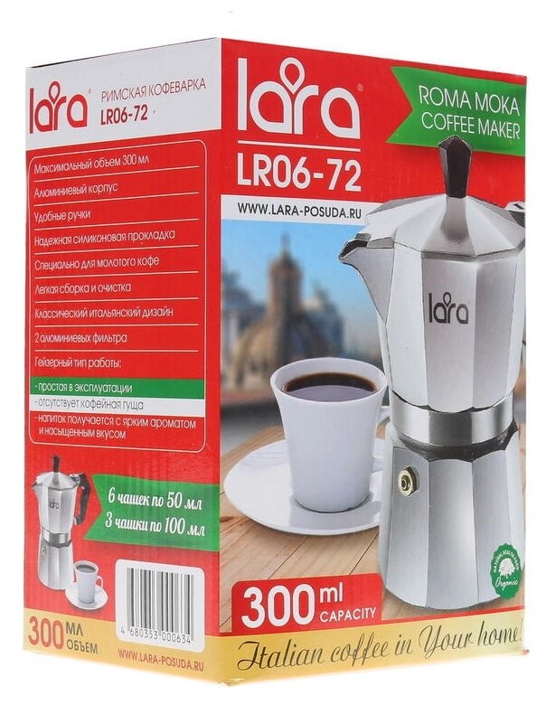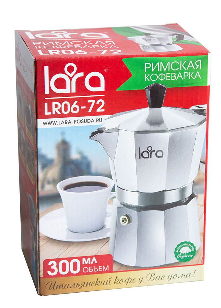 Купить Кофеварка Lara Lr06-72 300Мл (6Х50 Мл), Для Молотого Кофе, Алюм.корпус,Гейзерная LARA арт. LR0672