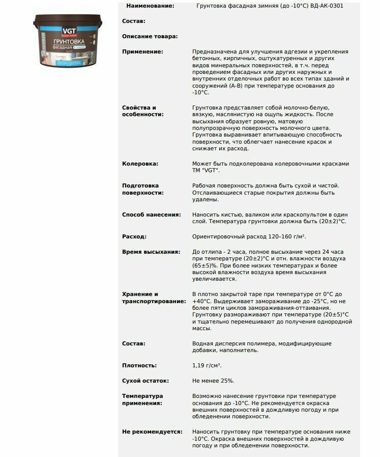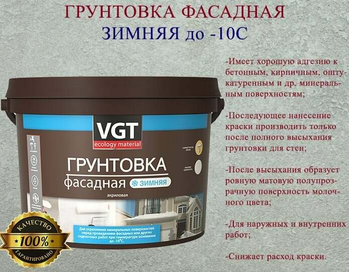 Грунтовка акриловая "VGT" ВД-АК-0301 фасадная зимняя до -10С 10кг интересное: