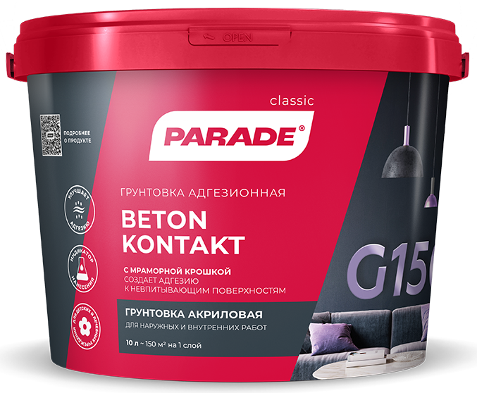 Грунтовка Адгезионная Parade G150 Beton Kontakt 10л Акриловая, Розовая / Парад Бетон Контакт G150. интересное: