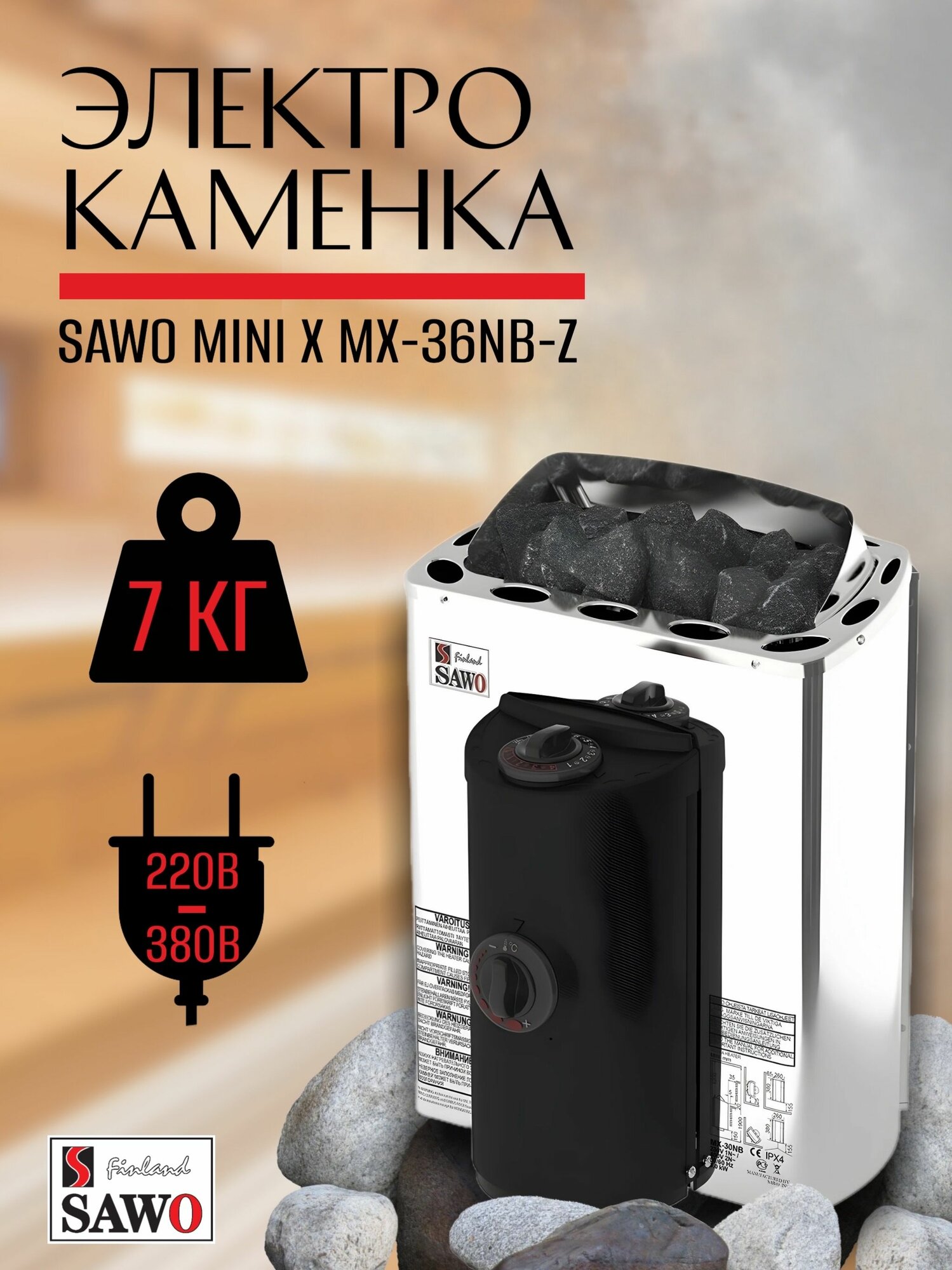 Электрическая печь SAWO MINI X MX-36NB-Z 3.6 кВт (со встроенным пультом)