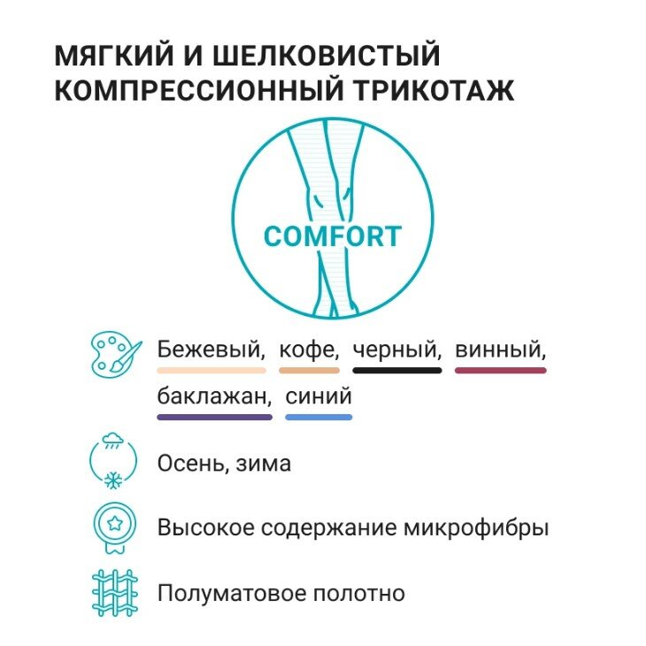 Venoteks Компрессионные чулки с микрофиброй Venoteks Comfort (II класс, 23-32 мм. рт. ст.)