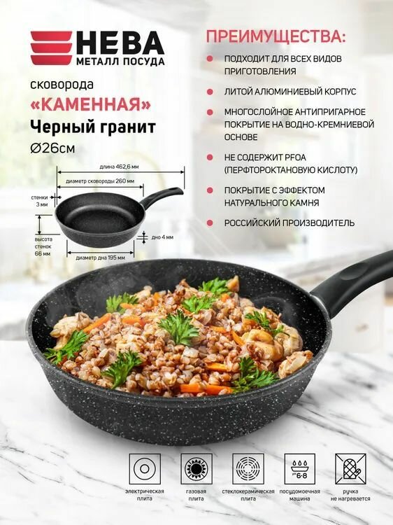 Сковорода нева металл посуда Универсальная литая 12026 26 см