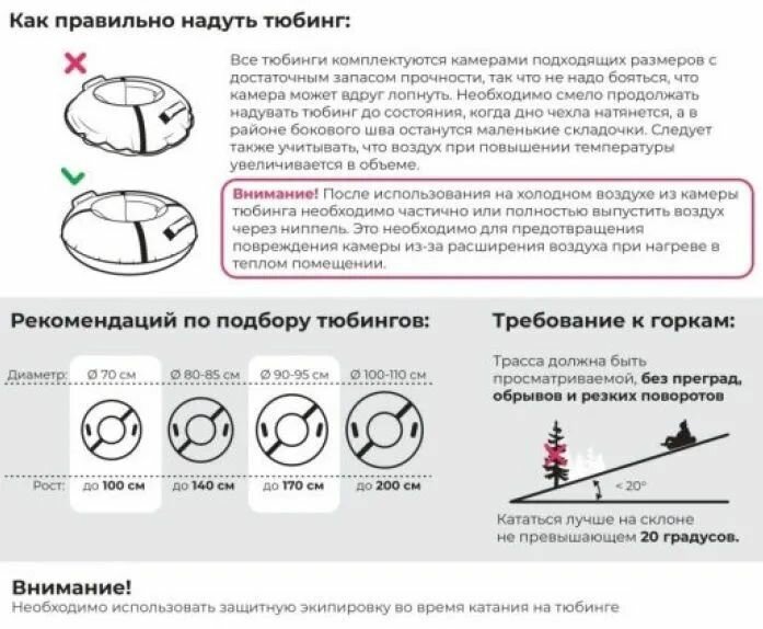 | Отзыв: | Соблюдайте технику безопасности при катании с гор на тюбинге. |