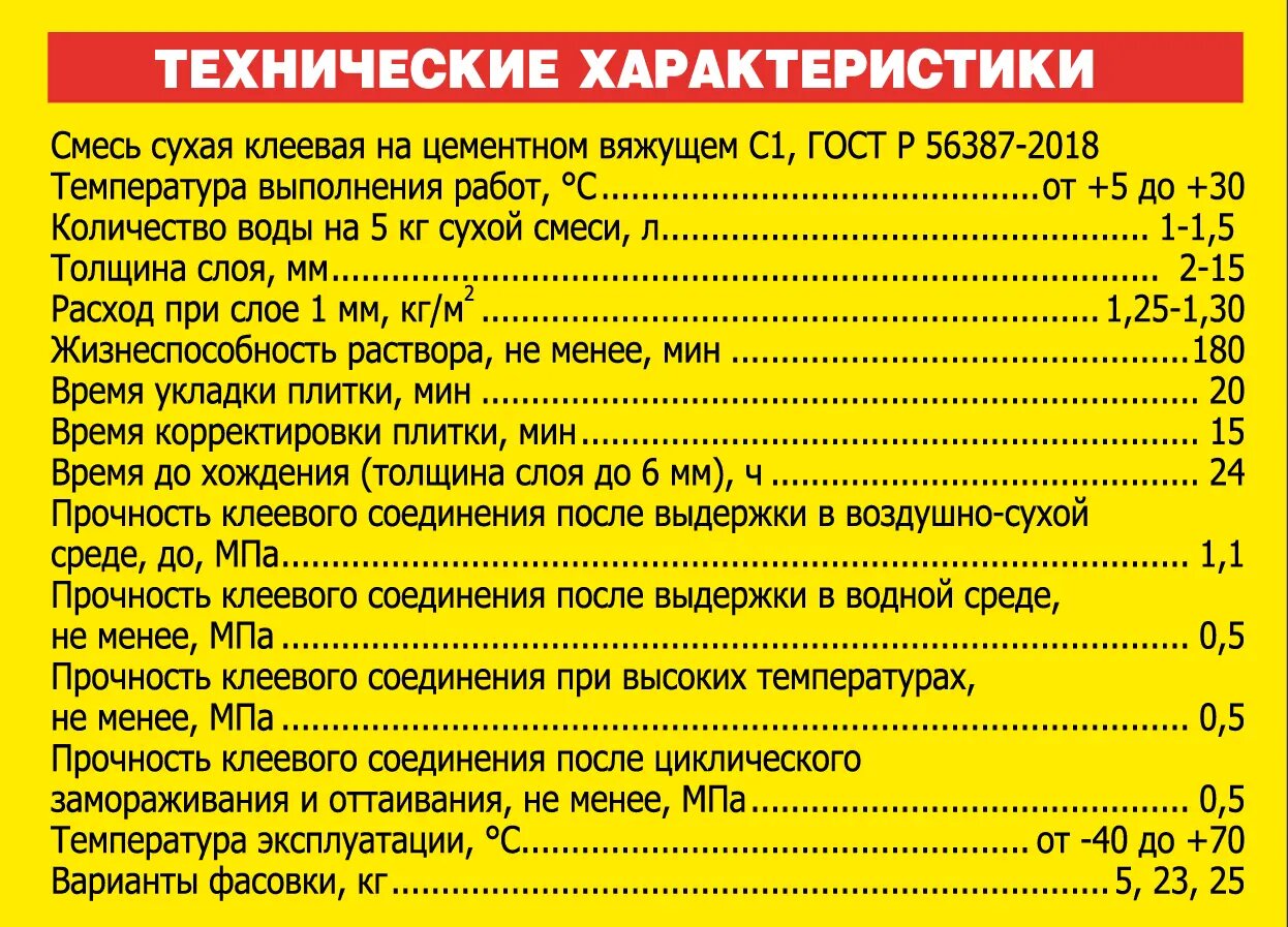 | Расход смеси (слой 1 мм) | 1 кг/м² |