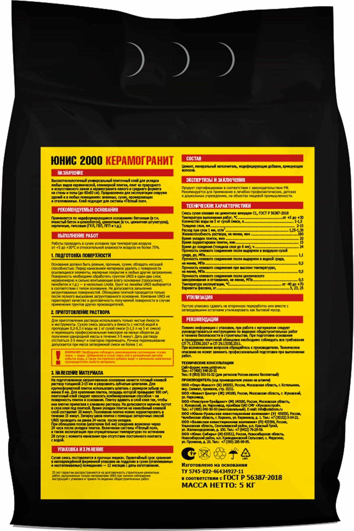 Юнис 2000 клей плиточный (5кг) / UNIS 2000 клей для плитки и камня (5кг)