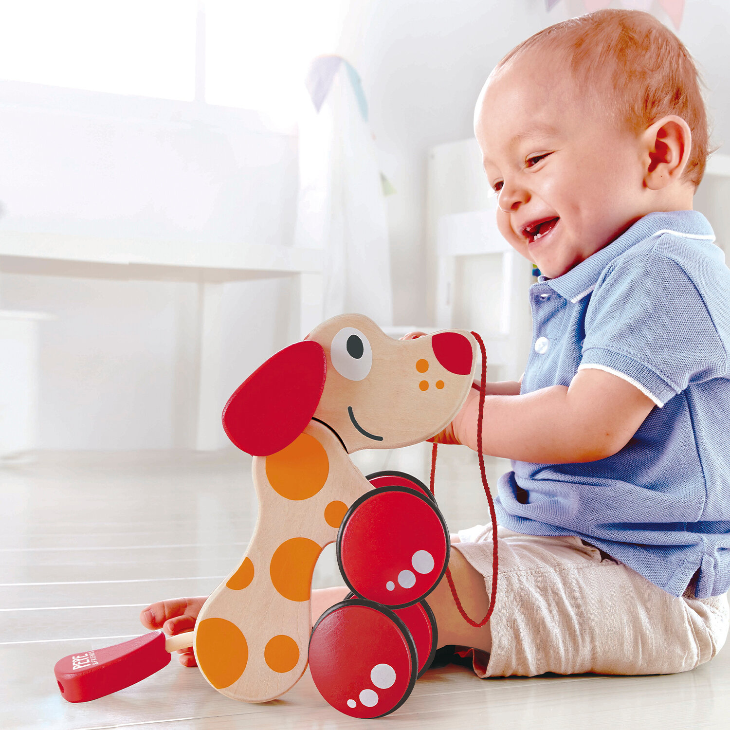 Каталка детская на веревочке Hape, собачка "Пепе" E0347_HP