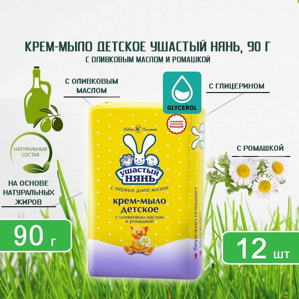 Крем-мыло детское Ушастый нянь с оливковым маслом и экстрактом ромашки, 90г х 12шт