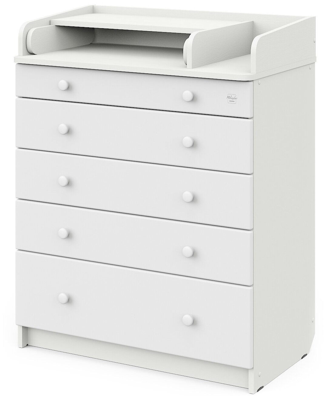 Комод пеленальный Атон Maks 5 ящиков, Древесина белая/белый