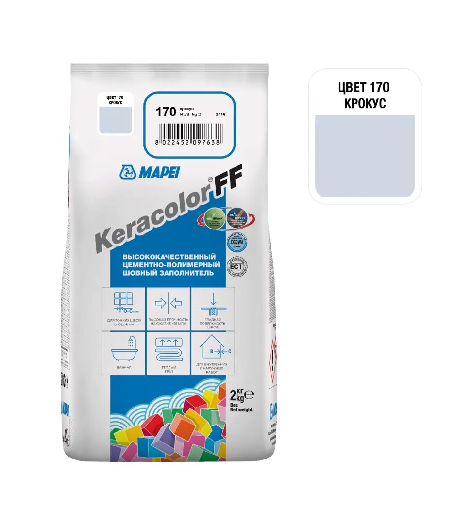 Мапей Кераколор ФФ затирка для швов №170 крокус (2кг) / MAPEI Keracolor FF цементно-полимерный шовный заполнитель №170 крокус (2кг)