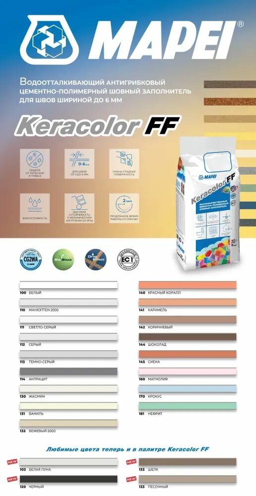 Ниже Вы можете прочитать отзывы на Затирка цементная Mapei Keracolor FF 170 цвет крокус 2 кг, ознакомится с подробными характеристиками, посмотреть интересные обзоры и фотографии на Затирка цементная Mapei Keracolor FF 170 цвет крокус 2 кг.