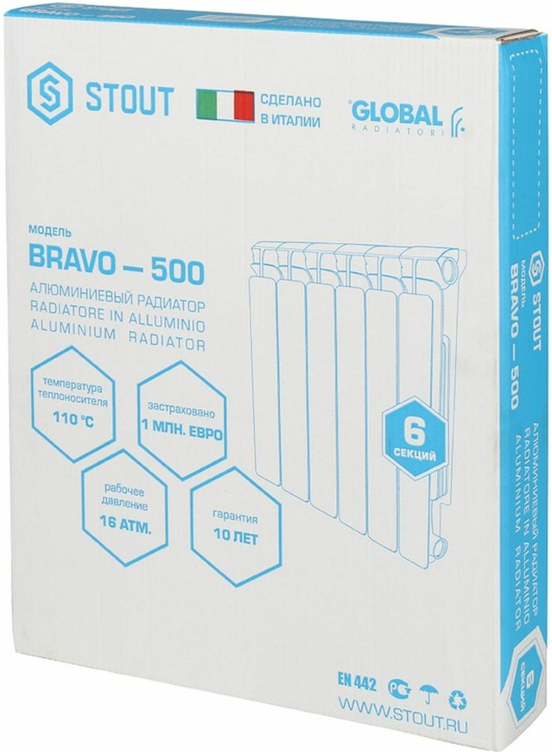 Радиатор алюминиевый Bravo 500 6 секций Stout (SRA-0110-050006)