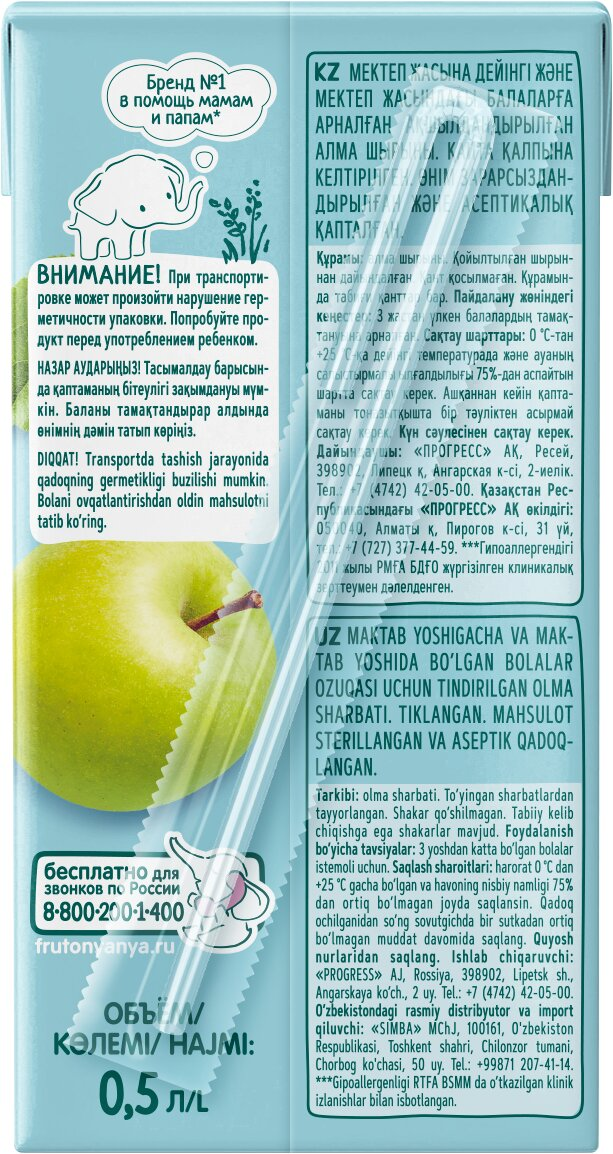 Сок Фруто Няня из яблок осветленный гипоаллергенный с 3 лет 500 мл интересное: