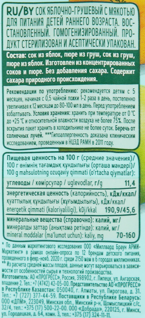 Сок фрутоняня Яблоко, груша с мякотью, с 5 месяцев, 200мл интересное:
