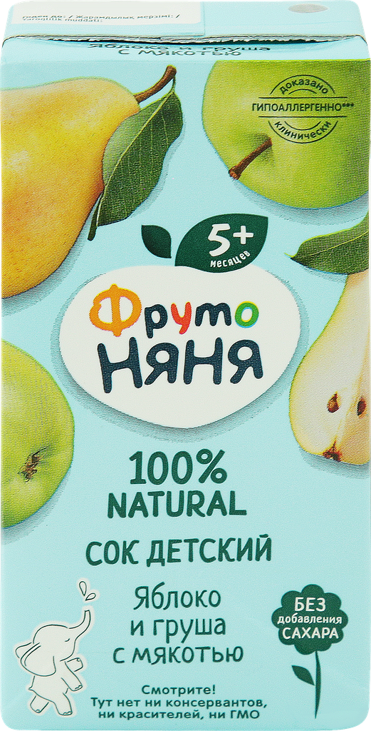Сок фрутоняня из яблок и груш гипоаллергенный, 200г