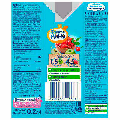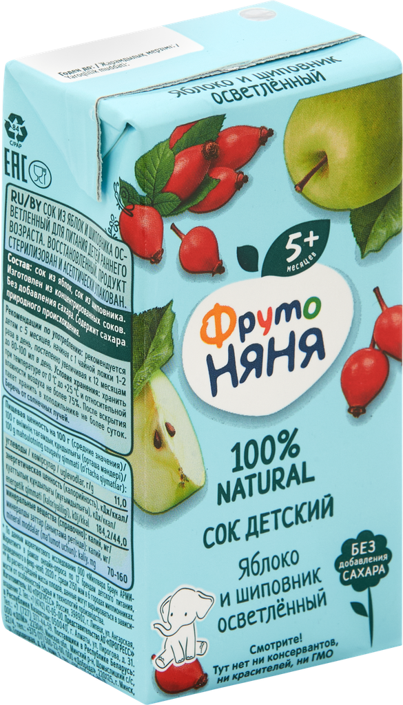 Сок фрутоняня Яблоко, шиповник осветленный, с 5 месяцев, 200мл интересное: