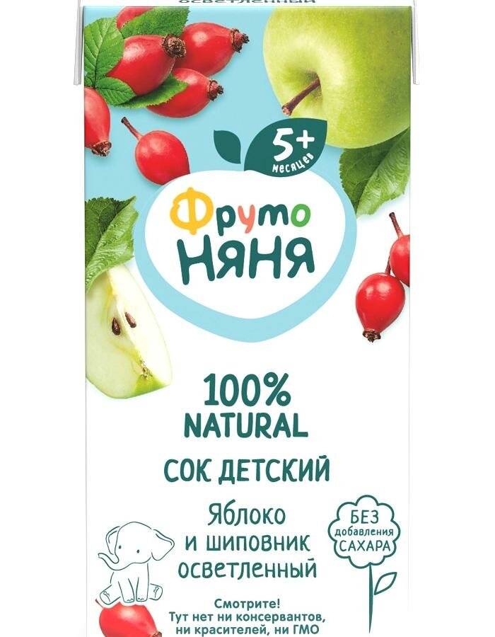 Купить Сок фрутоняня Яблоко, шиповник осветленный, с 5 месяцев, 200мл
